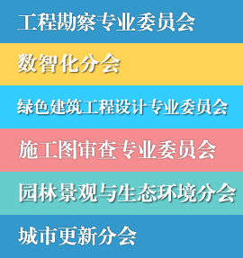 协会简介 协会领导 组织结构 协会章程 协会会员 加入协会 会员变更 工程勘察设计专业委员会 BIM专业委员会 绿色建筑工程设计专业委员会 施工图审查专业委员会 园林景观与生态环境分会城市更新分会